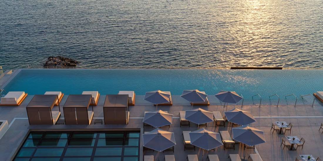L'établissement dispose de 199 chambres et suites élégamment conçues qui allient confort contemporain et sophistication minimaliste. Certaines chambres offrent des piscines privées ou communes, offrant aux clients une expérience exclusive et relaxante. L'hôtel possède deux piscines à débordement surplombant la mer, une salle de sport entièrement équipée et un spa proposant une variété de soins bien-être.